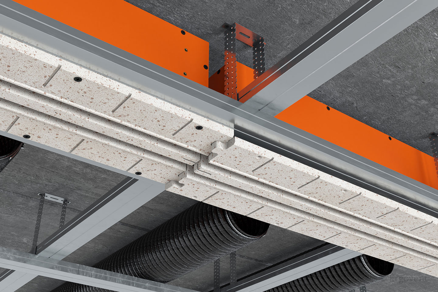 Difuzoru apakšējā daļa kas saskaras ar ģipškartonu, ir izgatavota no pārstrādāta cietā materiāla, kam ir ģipsim līdzīgas izplešanās un absorbcijas īpašības. Turklāt ģipškartona plāksnes, griestu profili un difuzors kļūst par vienu vienību, kas pēc nostiprināšanas pārvietojas kopā. Tas novērš risku, ka pēc uzstādīšanas un ilgstošas lietošanas ap difuzoru varētu rasties plaisas.