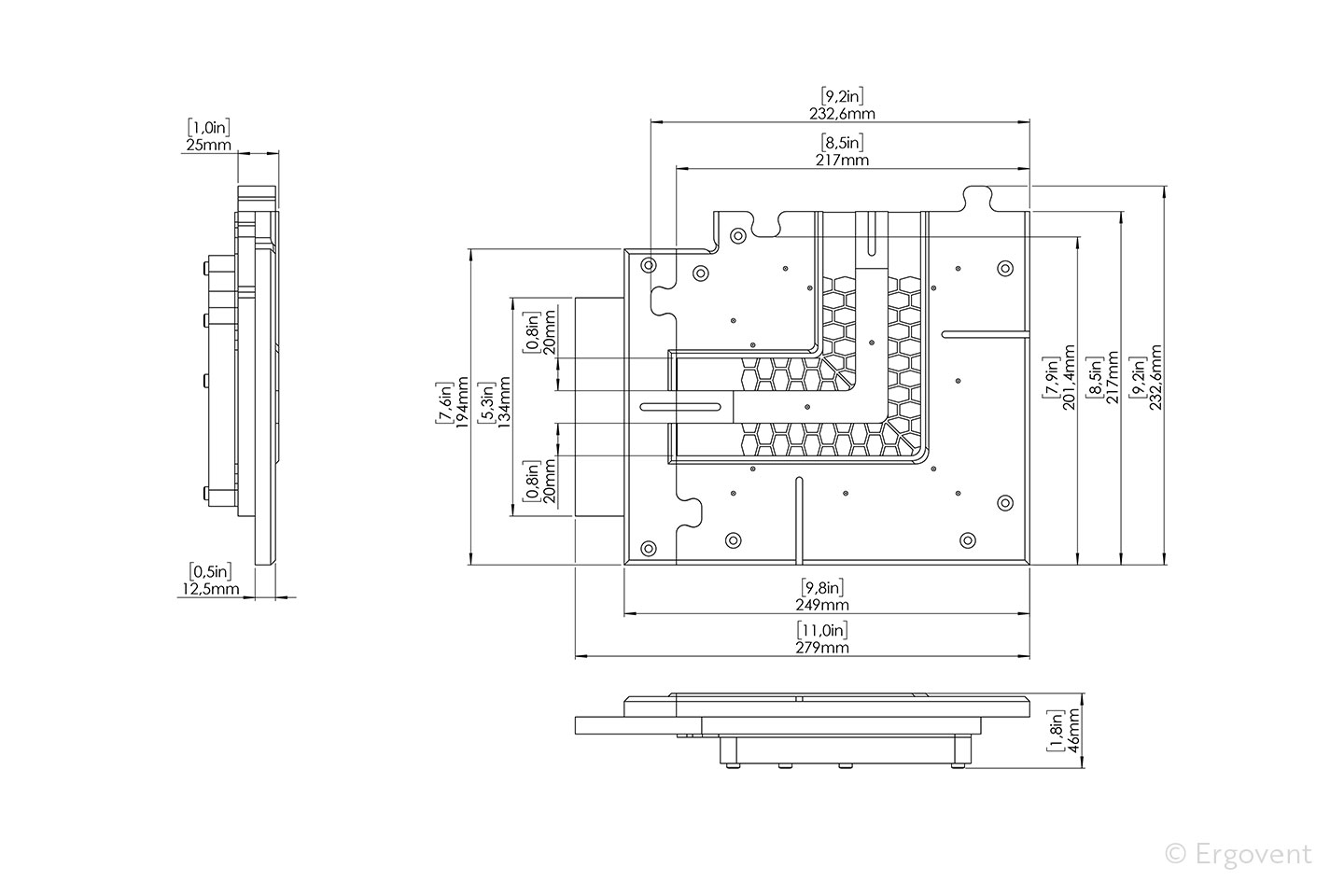 - Размеры: 222.00mm x 222.00mm x 44.00mm